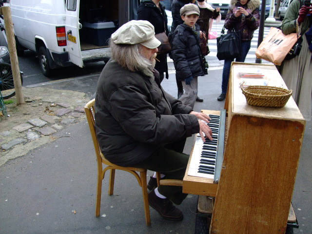 ← サンドイッチのバンの前にいるオルガン弾きのおじさん