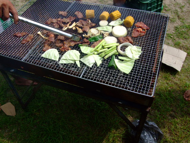 当日の朝は、ちょっと怪しい曇り空で海のご機嫌もあまりよくなかったので、先にBBQを満喫!!